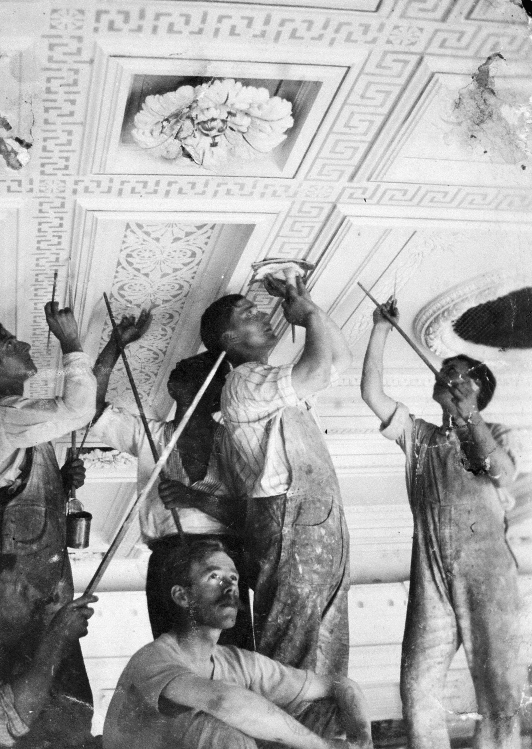 | S. Wuorion maalausliikkeen työntekijöitä. |